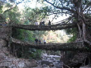 Afternoon drive to Sohra (Cherrapunjee) - Shillong and its surrounding is dotted with splendid waterfalls cascading down deep valleys forming misty sparks as they break the silence of the surroundings. While on the way, visit Shillong Peak which offers a bird’s eye view of the entire city and valley. Elephant Falls which is a mountain stream gorging down two successive falls set in dells of fern covered rocks. The newly opened state-of-the art orchidarium in upper Shillong is home to 300 species of orchids. The Mawkdok Dympep Valley View point is one of the most prominent attractions of the place. Most Tourists get the first view of the Mawkdok Dympep Valley, which extends right up to Sohra, from this view point. Getting a clear view is a matter of chance as mostly it is obscured by clouds. Overnight stay in Laitkynsew/Tyrna (Village Near Living Root Bridge).